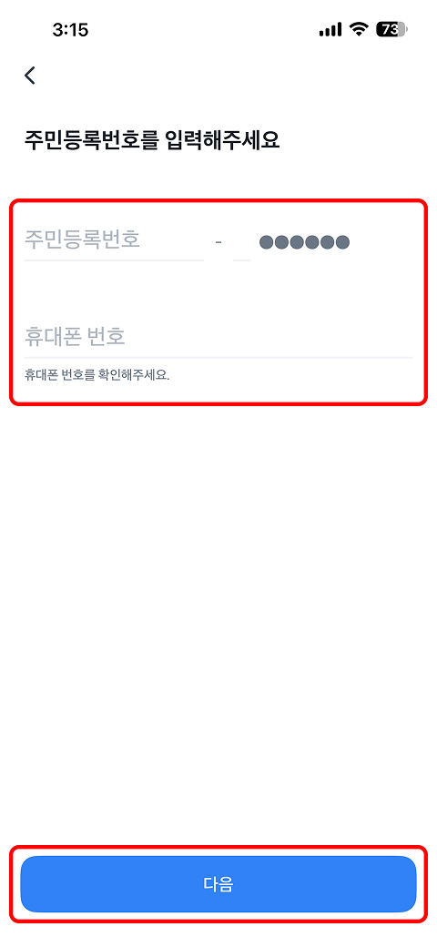 인증서 발급을 위해 본인 명의 휴대폰 번호로 본인확인 진행