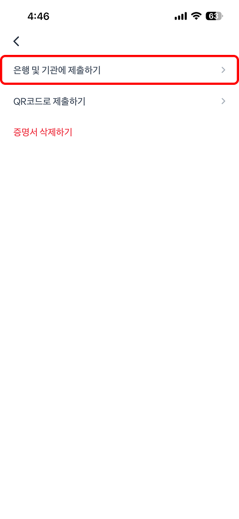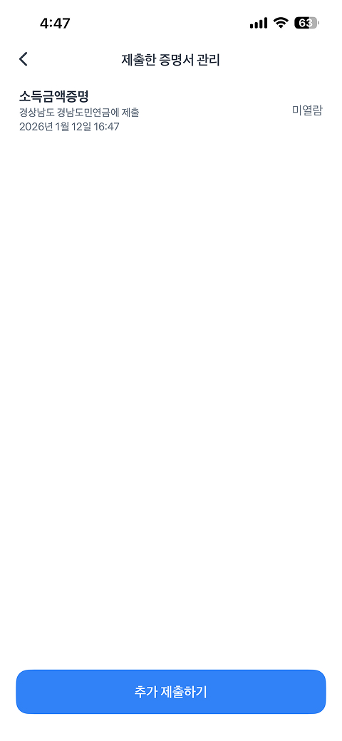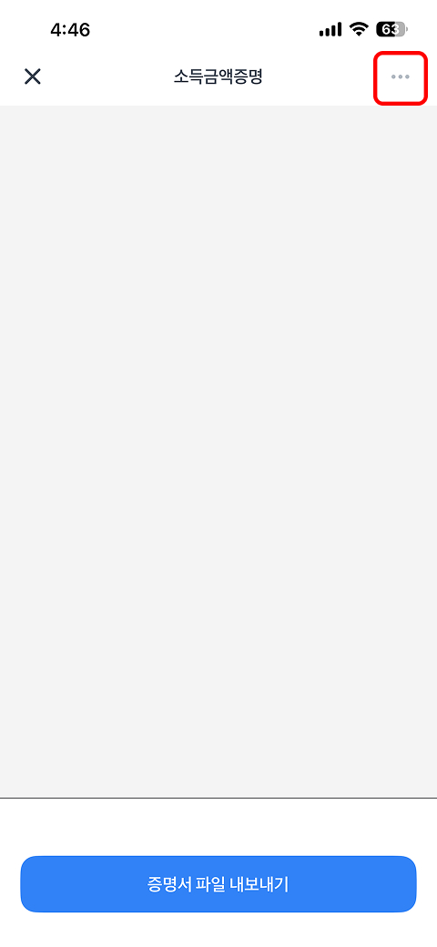 전자증명서 → 내 증명서 → 발급받은 전자문서(소득금액증명) 선택 → 제출하기→ 제출완료 확인 톡